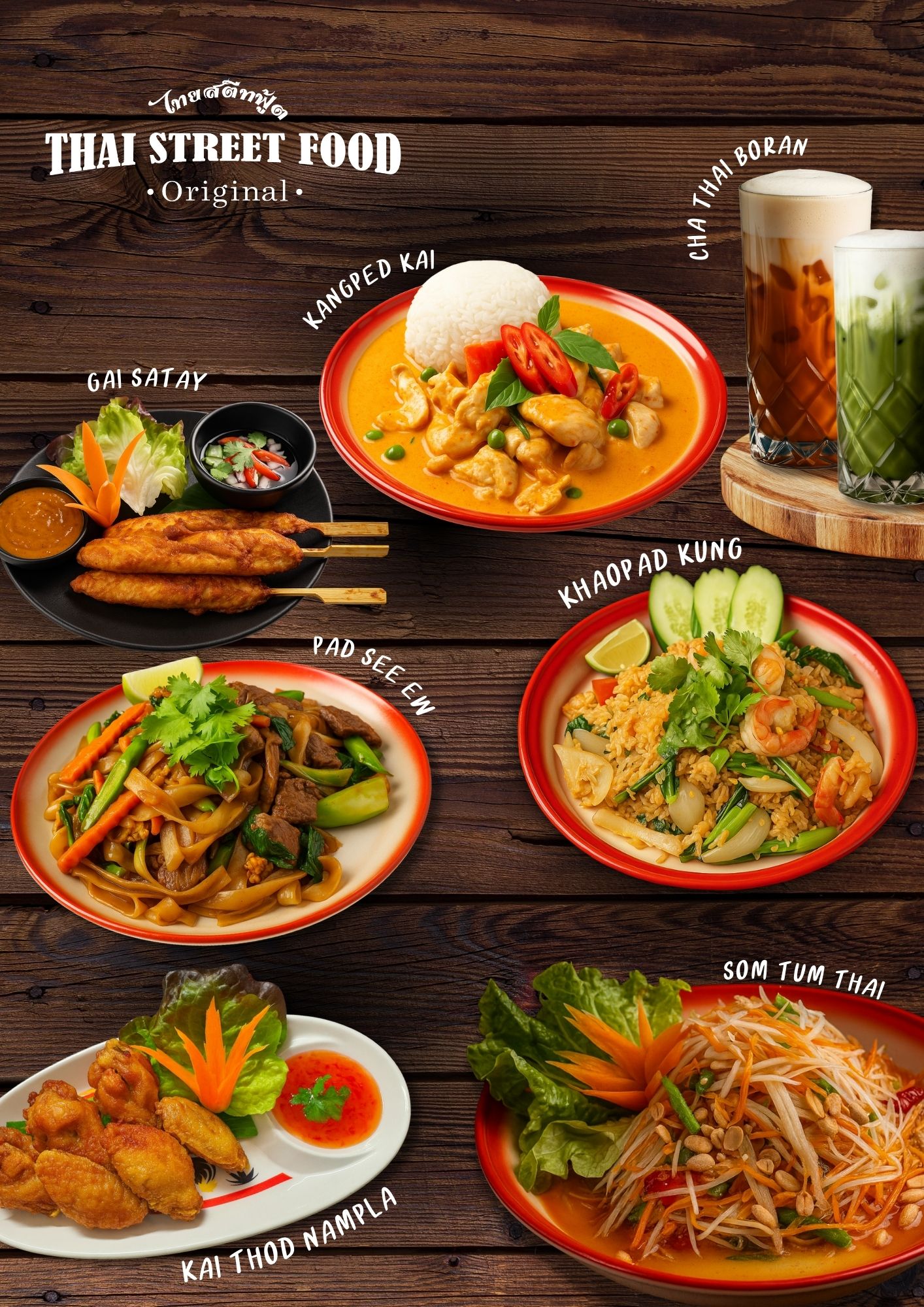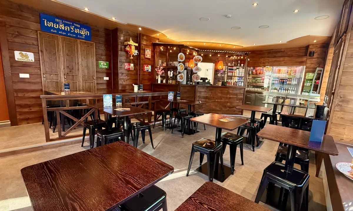 Beim Betreten von Thai Street Food werden Sie sofort von einer einzigartigen Atmosphäre empfangen, die die lebendige und exotische Welt thailändischer Straßenküche direkt in ihre Nähe bringt. Der Raum kombiniert den charmanten, lockeren Stil der thailändischen Straßenstände mit modernen Elementen.